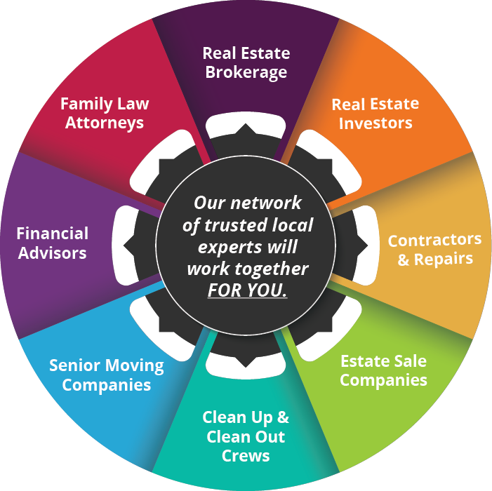 The”Service Hub” wheel below shows just some of the many solution providers we can connect you with to make the probate process as smooth as possible.